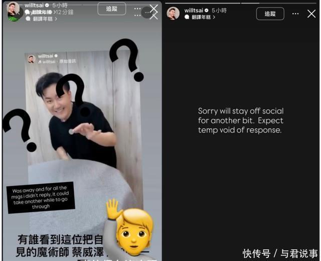 而蔡威泽则在周杰伦发布寻人文后约1小时回应,他先是转发周杰伦的推文表示:“真的很久没出现。”并附上打招呼的表情。 随后,他又发布黑底白字文,写下:“Sorrywillstayoffsocialforanotherbit.Expecttempvoidofresponse。(抱歉,我会远离社交媒体一段时间。暂时不会回复信息。)”