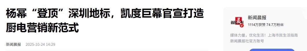 【2】新闻晨报 2025-10-24 杨幂“登顶”深圳地标,凯度巨幕官宣打造厨电营销新范式